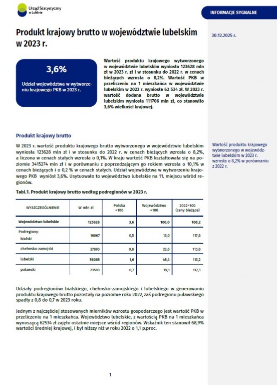 Produkt krajowy brutto w województwie lubelskim w 2023 r.