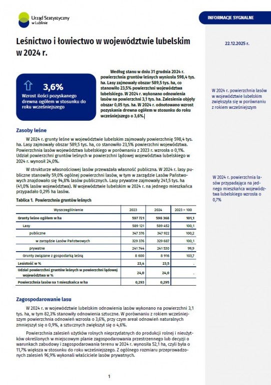 Leśnictwo i łowiectwo w województwie lubelskim w 2024 r.